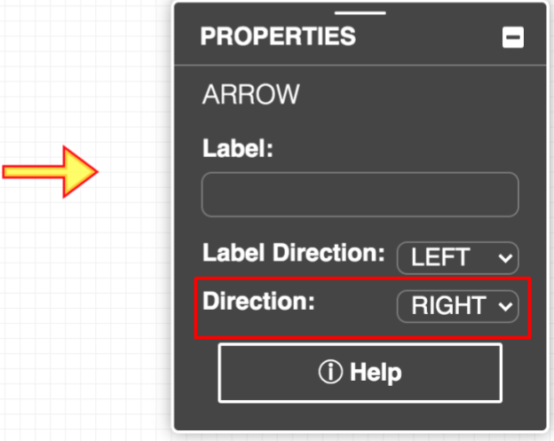 Similar to the Rectangle annotation element, the Arrow annotation element (refer Figure 4.14) allows the user to draw attention to a specific portion of the circuit. The direction of the Arrow circuit element can be changed either by using the arrow keys on your keyboard or using the PROPERTIES panel to edit the Direction: attribute (refer Figure 4.15).