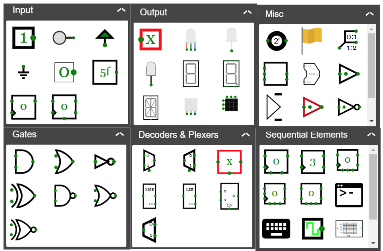 CircuitVerse includes a vast library of circuit elements for building circuits (refer Figure 4.1).